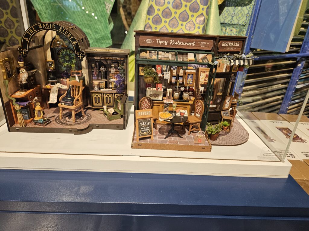 I love writing letters on parchment paper using fountain pens, but that is something almost no one does any more, and I wanted to go in to see what they had. What did they have? Four stories of fine paper, expensive, high-quality pens, and interesting paper goods like these book sized models: