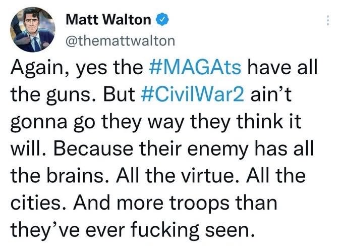 There is a segment of the left that wants a civil war. There is also one on the right that wants one. Both of those groups are delusional, because they both think the war will be short, and they will win.