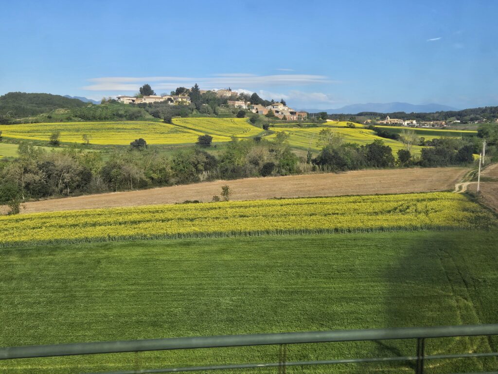 We woke up at our hotel in Barcelona and headed to the train station. Because we didn’t know what to expect, we arrived at the train station 45 minutes early. There wasn’t much of a waiting area, I guess Spaniards don’t arrive early very often. Still, the train station was clean and there was no graffiti. You did have to pass through airport style security, complete with X-rayed luggage. Then they had all of the passengers for the entire train line up cattle style, then pushed all of us into the train at once.